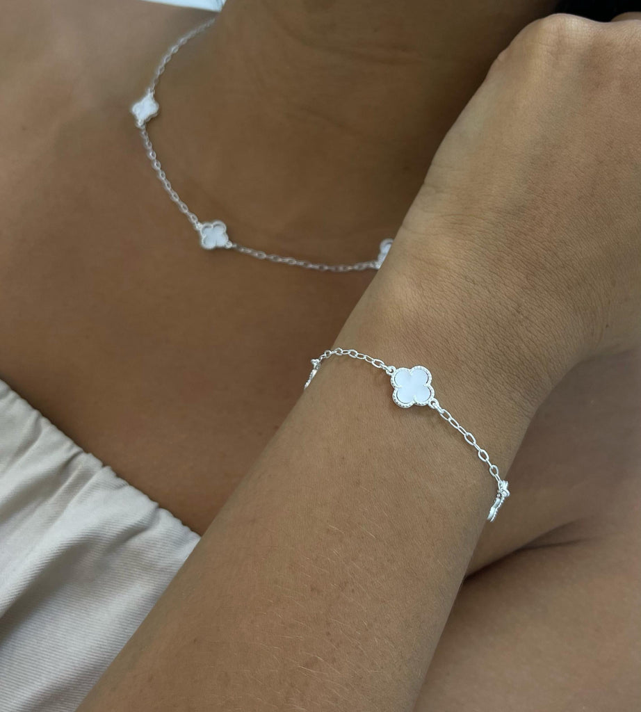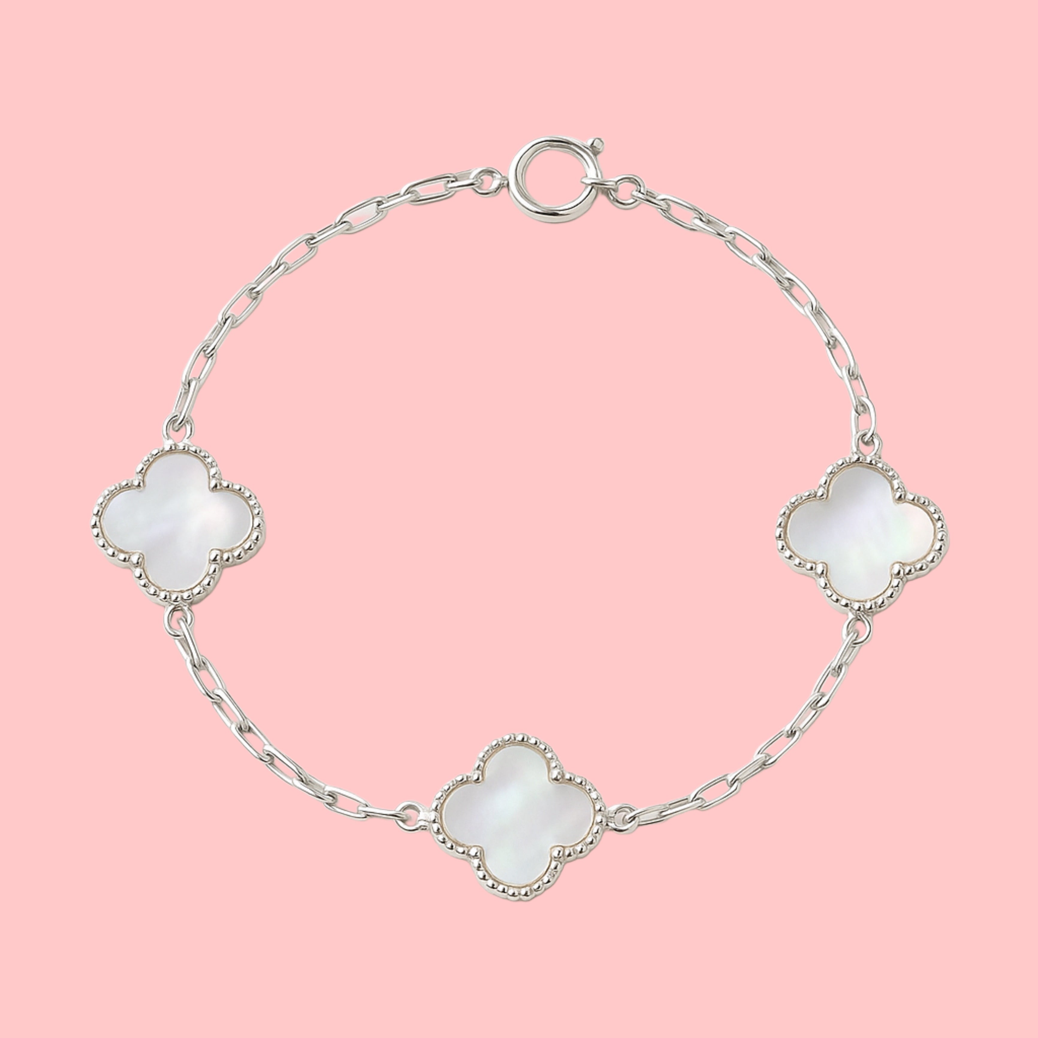 🍀 925 Sterling Silver Clover Bracelet with Mother of Pearl