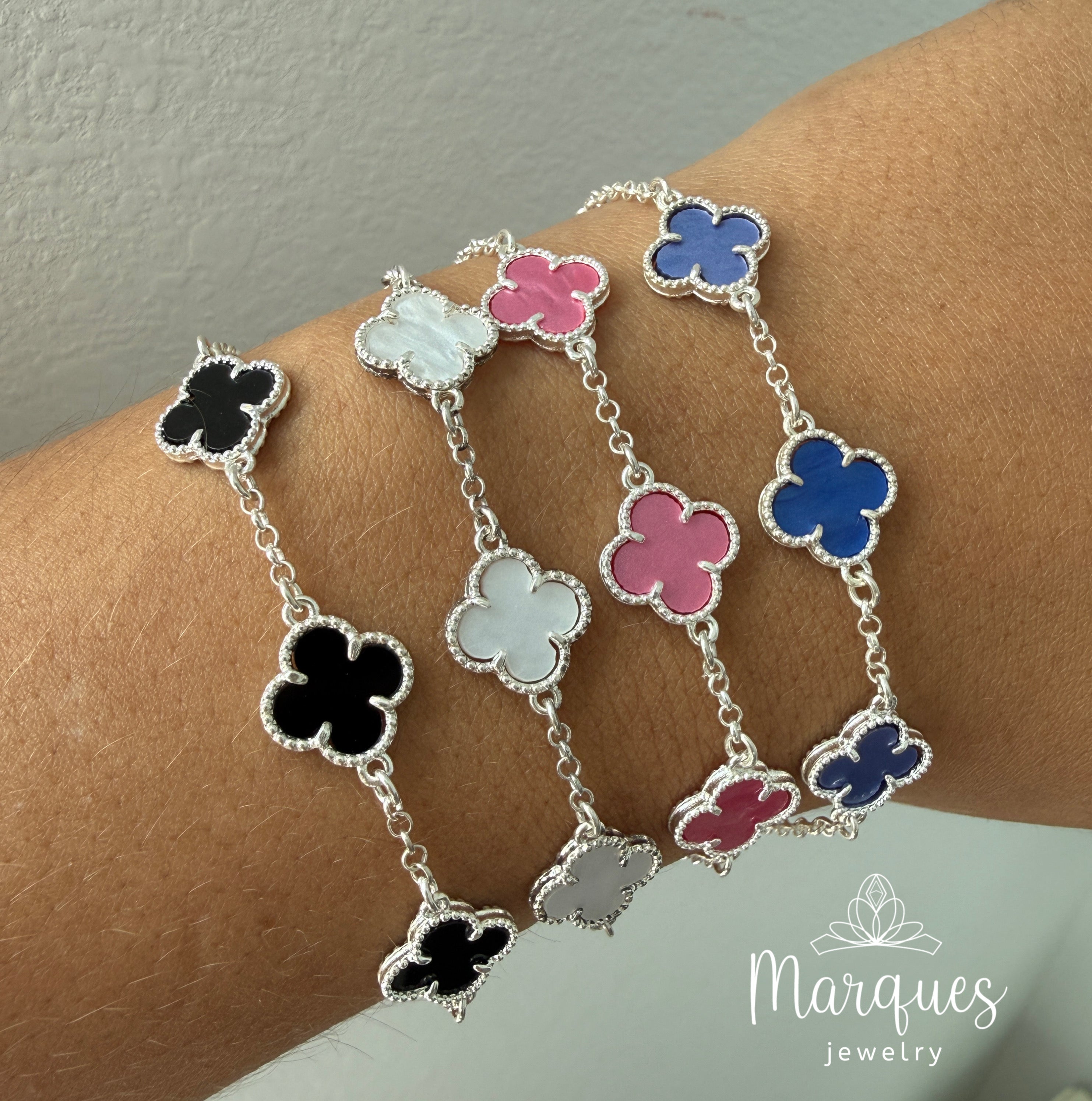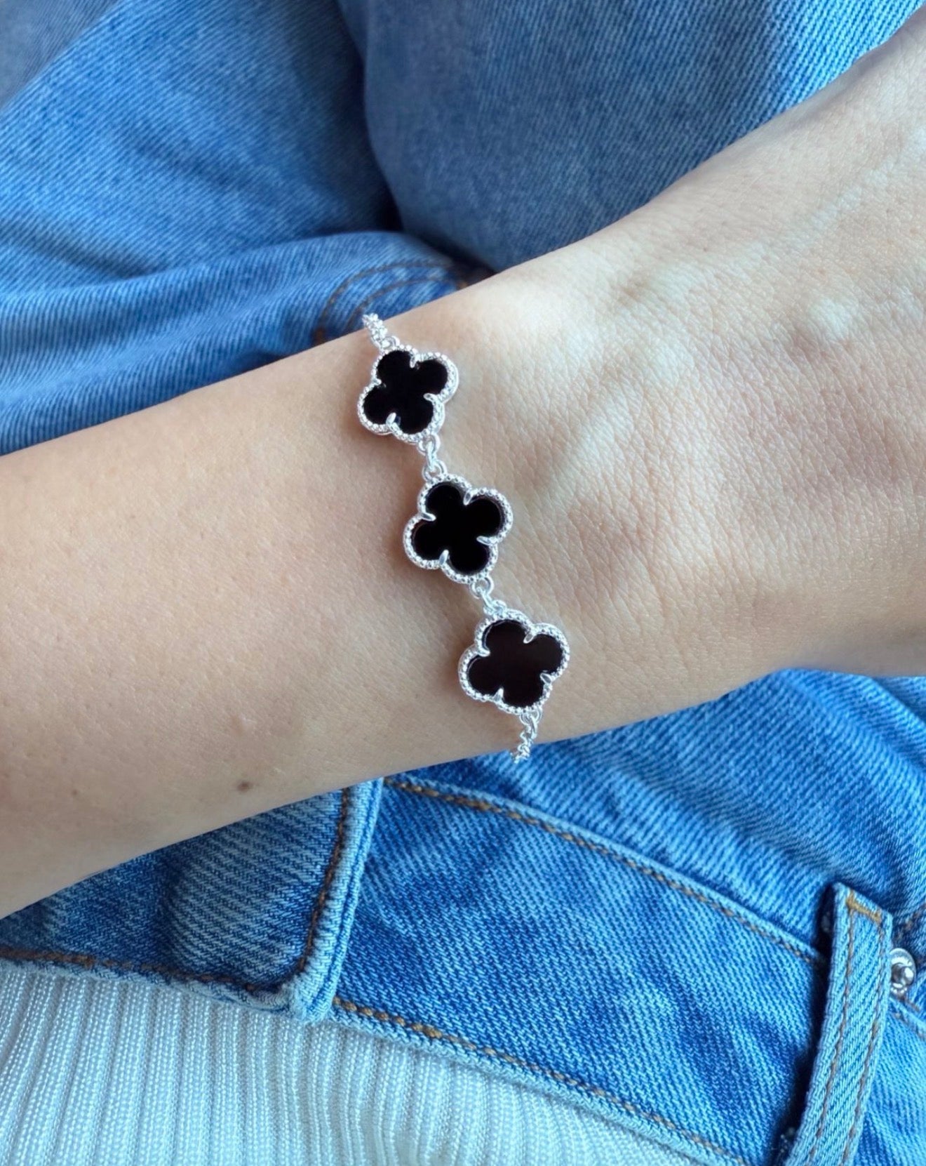 This bracelet features black clover details crafted in genuine 925 sterling silver, symbolizing elegance, strength, and timeless style.