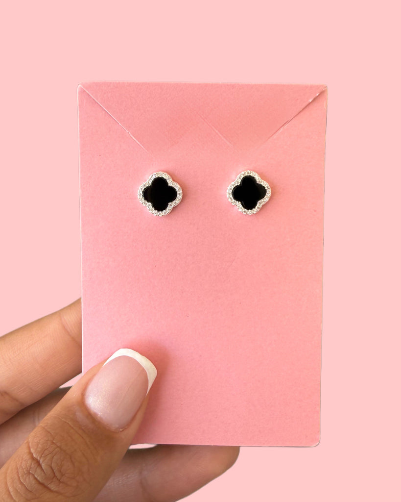 🖤 Black Clover Stud Earrings – 925 Sterling Silver