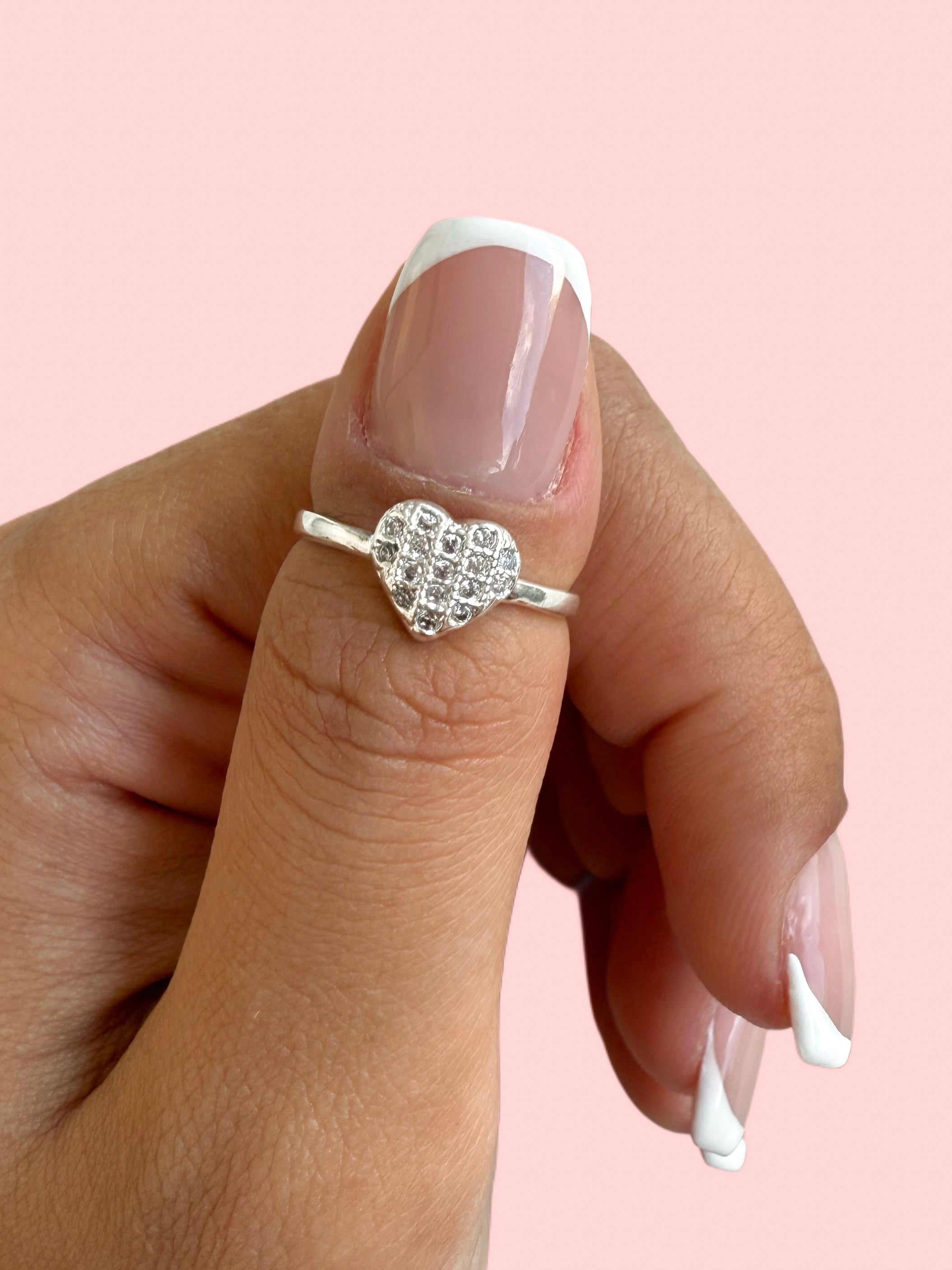 A sweet touch of sparkle! This fixed-size ring features a heart adorned with shimmering zirconia stones, crafted in genuine 925 sterling silver. Perfect for gifting or adding a romantic touch to your everyday look.