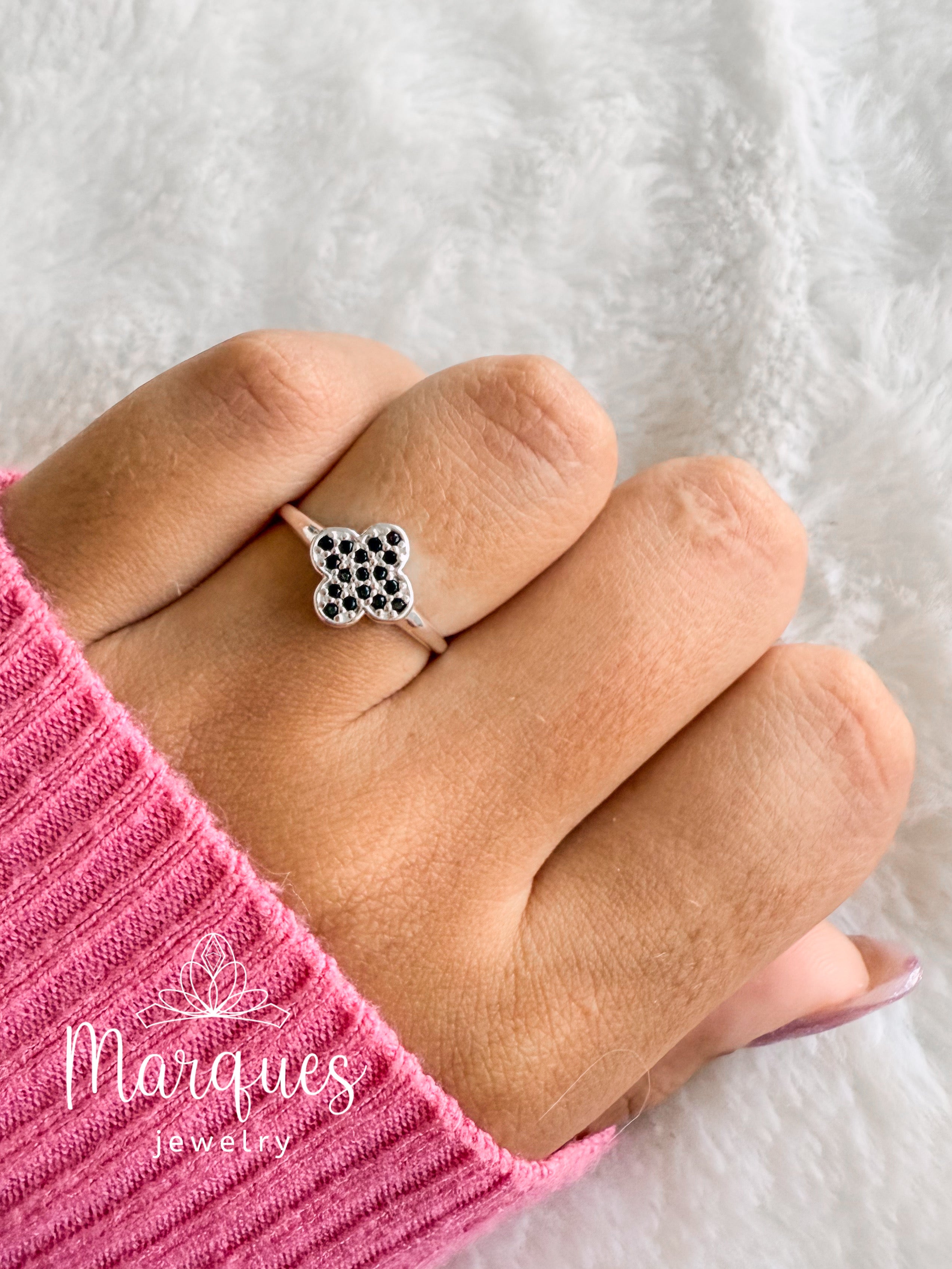 Lucky Clover Ring in 925 Sterling Silver with Black CZ Stones 🖤