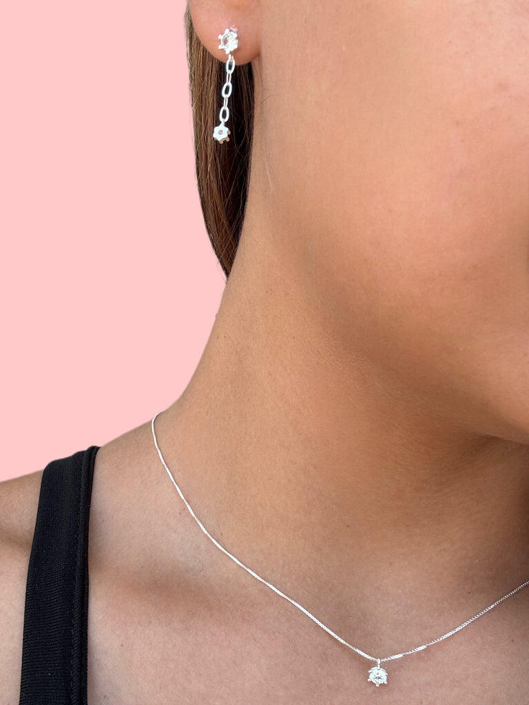 Minimal sparkle, maximum charm 💖 This elegant set features a classic solitaire necklace paired with delicate drop earrings, both crafted in 925 sterling silver and adorned with brilliant zirconia.