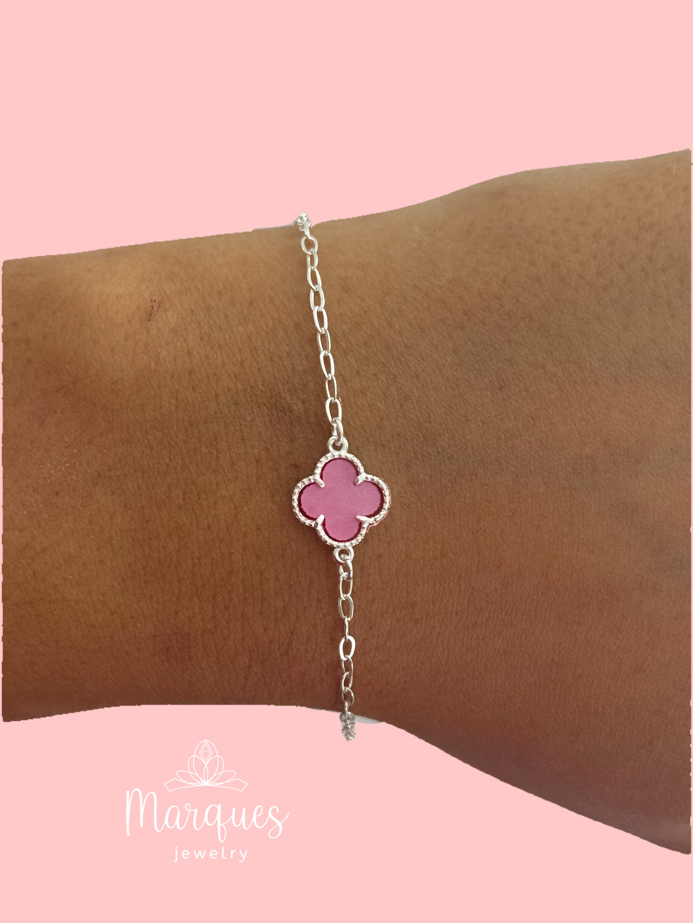 Delicate and elegant, this bracelet features a single clover charm in a soft pink tone, symbolizing luck, love, and femininity. Crafted in genuine 925 sterling silver, it offers a minimalist design with a refined finish, perfect for those who appreciate subtle and timeless jewelry.